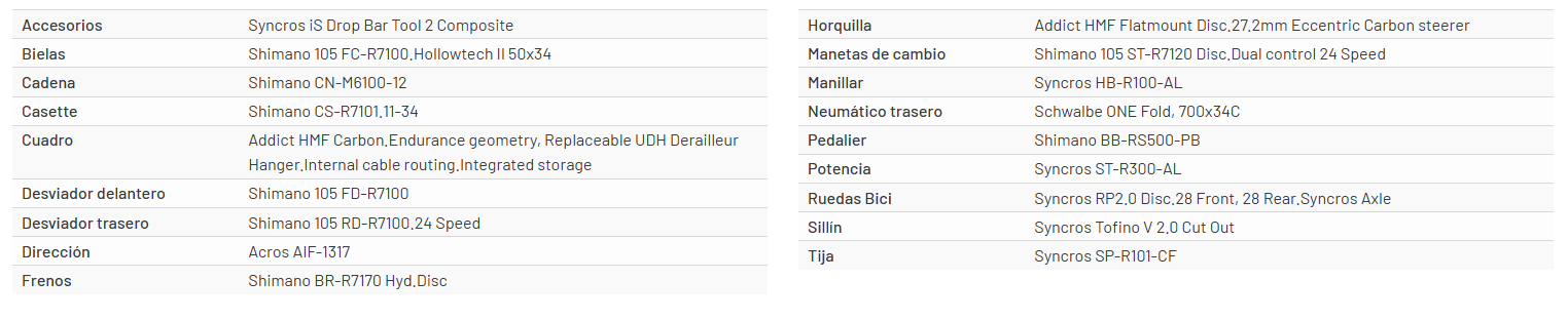 La Addict 50 es una bicicleta de carretera ligera y aerodinámica, diseñada para quienes disfrutan la ruta sin renunciar a la velocidad en sprints o descensos. Fabricada con fibra de carbono HMF, ofrece un 25% más de flexibilidad vertical que los cuadros de competición, brindando una conducción más suave y menos fatigante. Su geometría abierta, con stack más alto y reach más corto, mejora el confort sin perder rendimiento. Admite cubiertas de hasta 38 mm para mayor amortiguación en superficies mixtas. Equipada con transmisión mecánica Shimano 105 2x y ruedas Syncros RP2.0 con cubiertas Schwalbe ONE, garantiza fiabilidad y rendimiento en rutas largas.