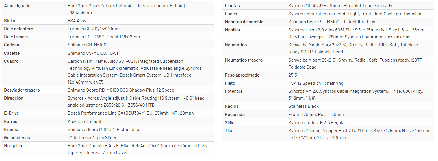 Importante: las especificaciones técnicas de la bicicleta están sujetas a cambios sin previo aviso.