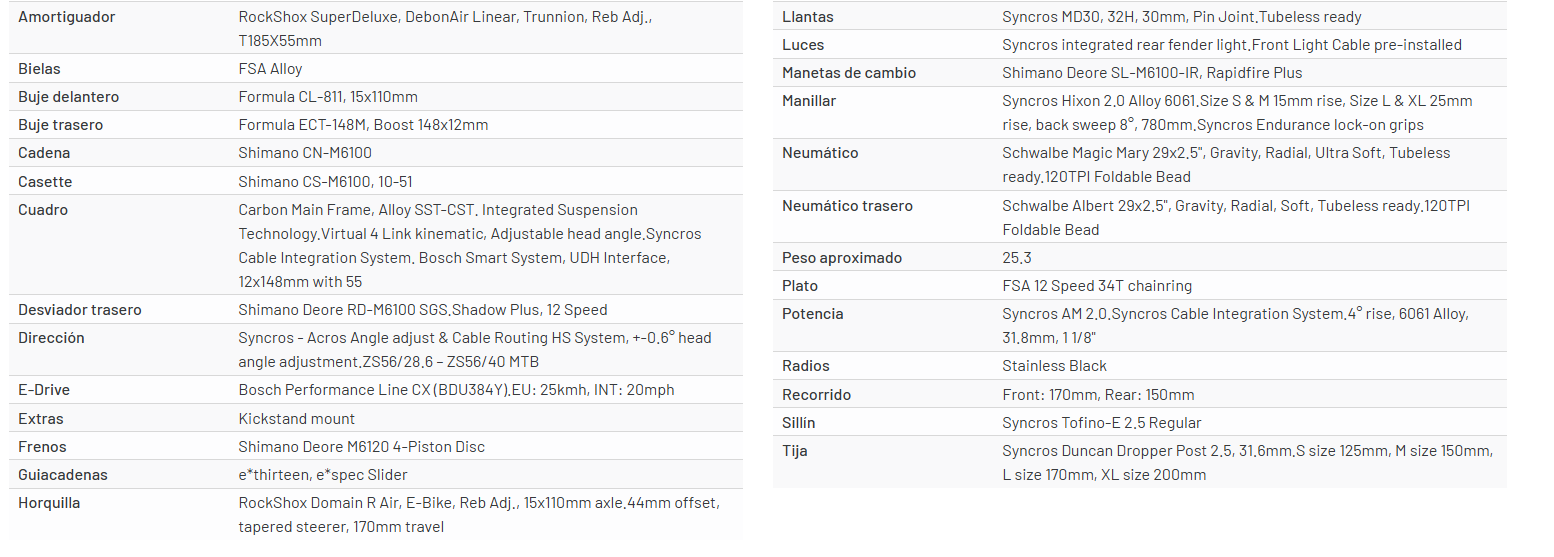 Importante: las especificaciones técnicas de la bicicleta están sujetas a cambios sin previo aviso.