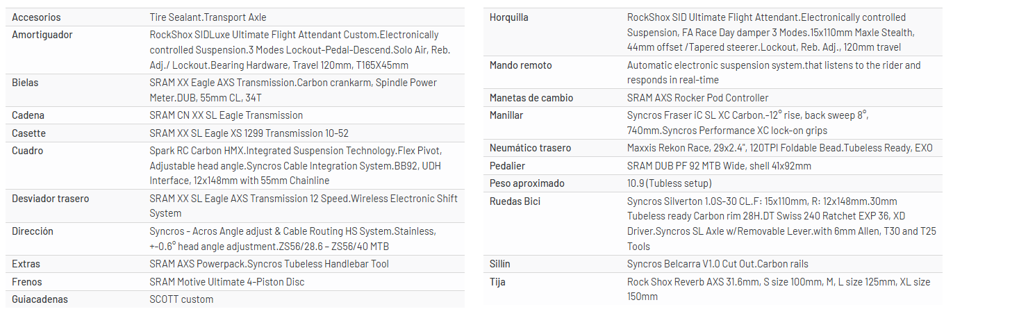 La Spark RC World Cup EVO es la mezcla perfecta de ingeniería de vanguardia en carbono, unos niveles de integración nunca vistos hasta ahora y la cantidad exacta de nuestra salsa secreta. Queríamos que esta bicicleta fuera más veloz tanto en los ascensos como en los descensos. Hemos alargado el recorrido de la suspensión, hemos perfeccionado la geometría y hemos hecho caso a los mejores deportistas del mundo para crear la bicicleta de carreras de cross country definitiva. Si te apasiona la velocidad, esta montura te va a encantar. Importante: las especificaciones técnicas de la bicicleta están sujetas a cambios sin previo aviso.